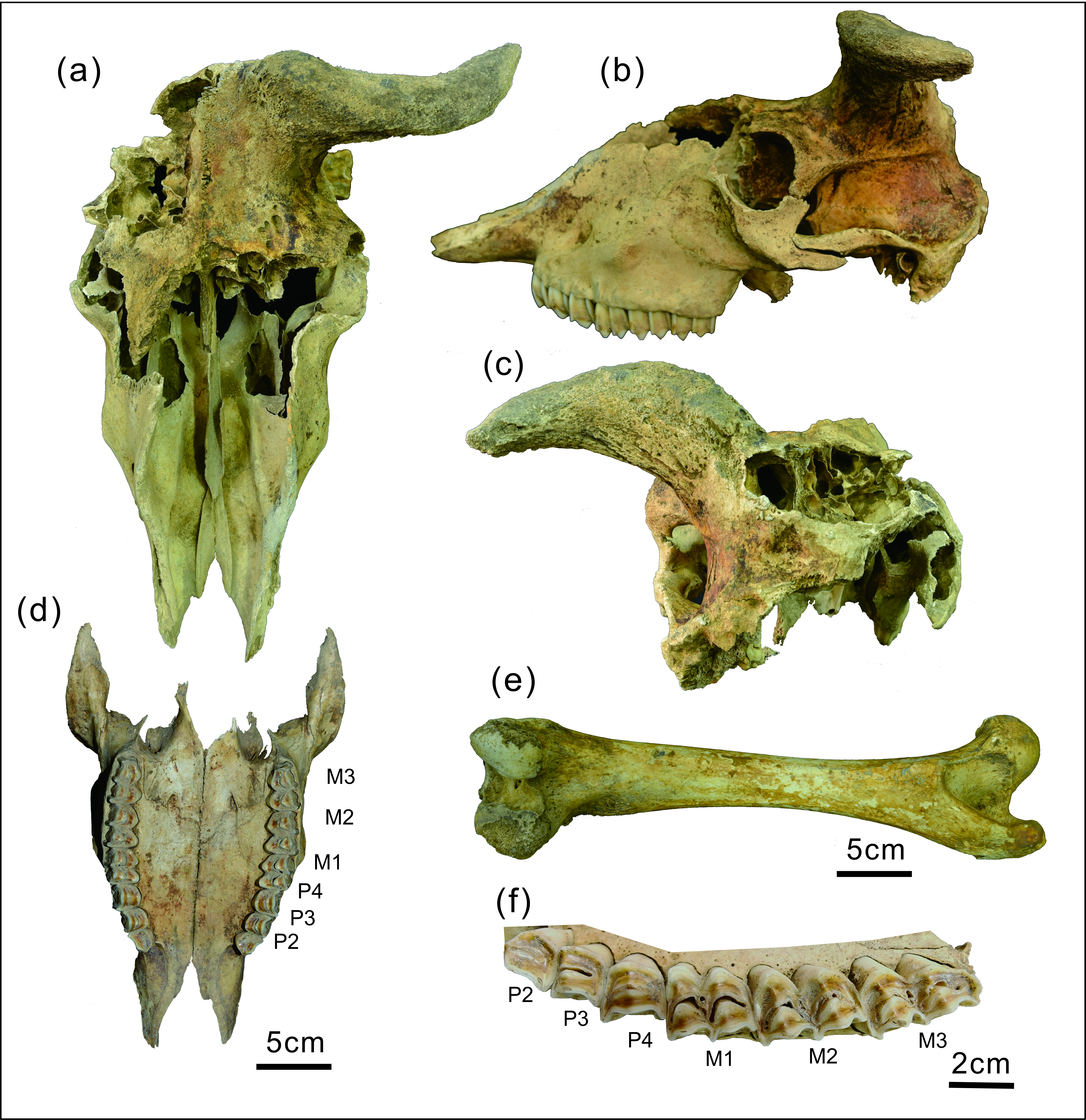 随后,科考团队对周边沉积环境进行进一步清理与辨识,又在距该标本约20米处发现另一具个体化石。经形态测量、年代学测定及系统分类分析确认,两具化石均为羚牛,分别是1头未成年个体和1头成年个体,均来自晚更新世晚期,距今约1.5万年和1.1万年。