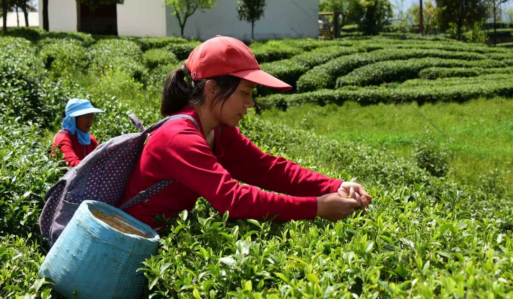 4月1日,达州市万源市固军镇境内的蜀韵生态农业茶园迎来明前茶采摘、销售旺季。跟随四川银行万源支行工作人员步入茶园一睹绿意涌动的茶乡风光。