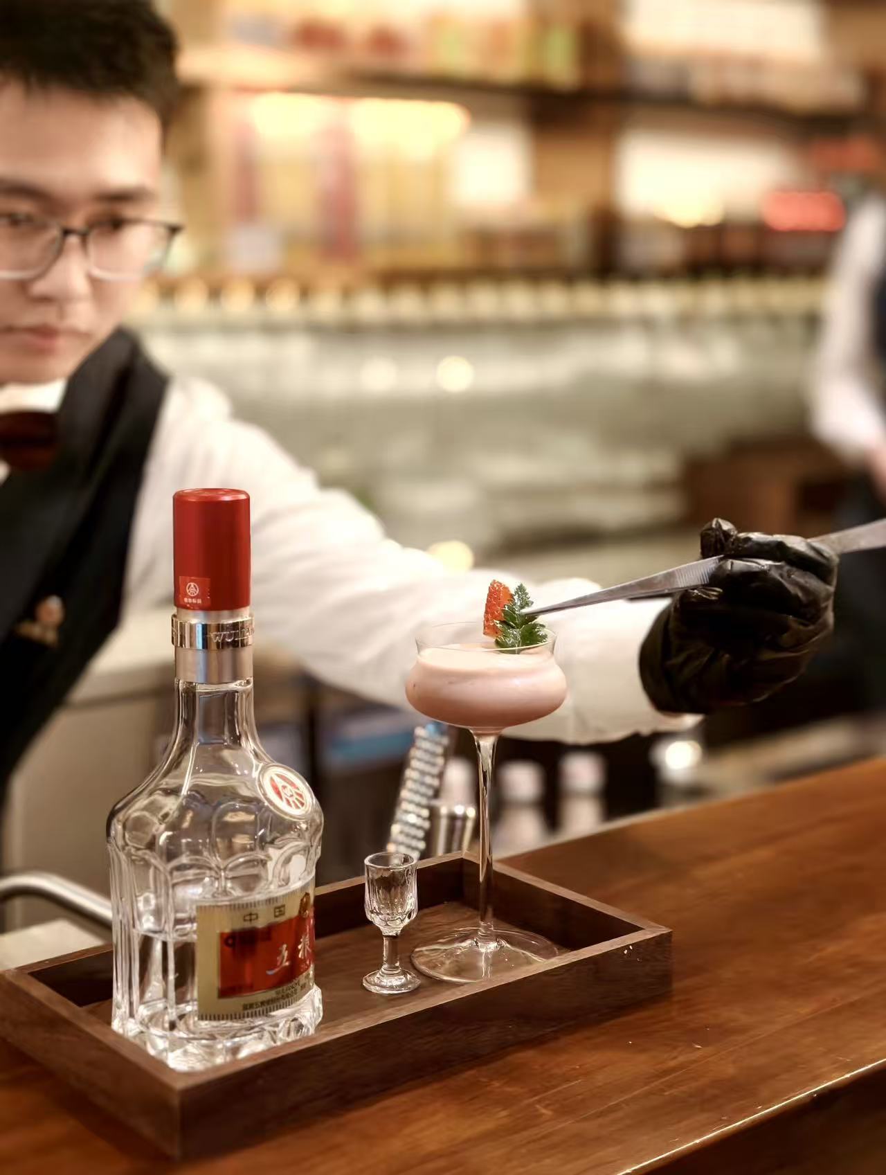 “白天是餐吧,晚上是表演现场。”这家位于成都金融城核心区的两层独栋餐酒吧,设有咖啡与调酒双吧台,推出“一见倾心”“烟熏五粮”等29°低度白酒特调,尝试用“日餐夜酒”的全时段经营模式,让白酒更多融入年轻人的社交生活。