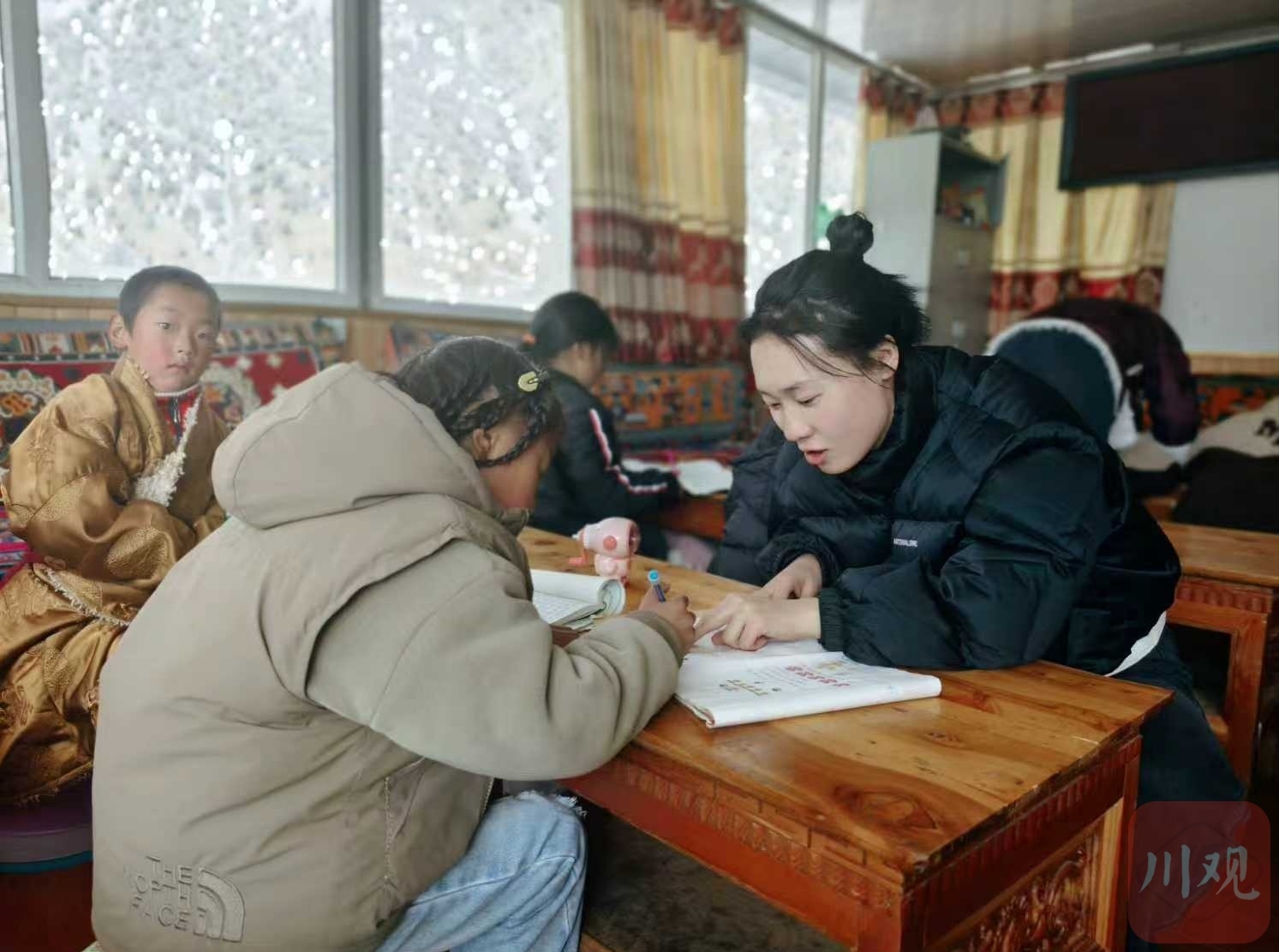 辅导孩子作业。 壤塘县委宣传部供图