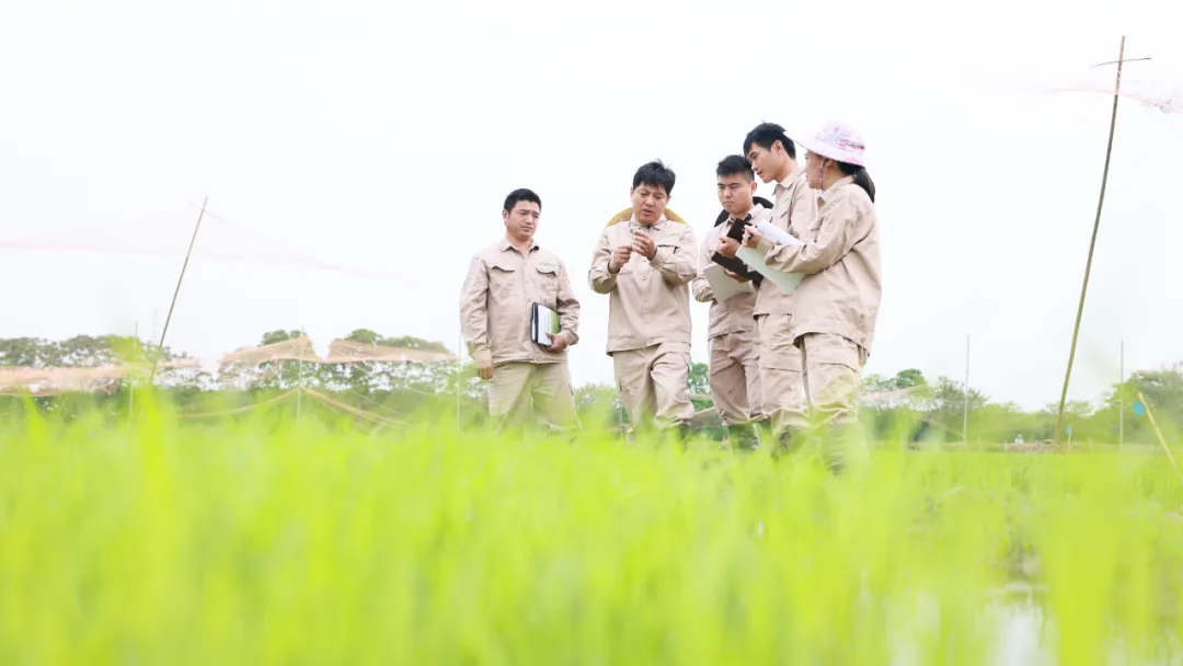 在荃银高科南岗水稻实验基地,科研人员在察看水稻秧苗生长情况。张正朋 摄