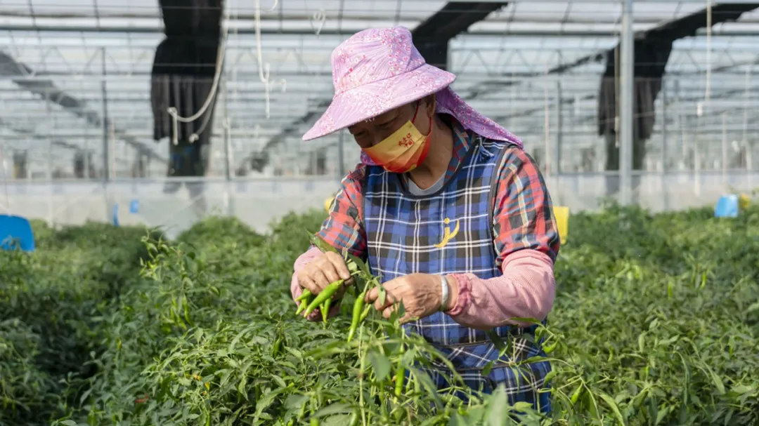 肥东荣建杭椒蔬菜专业合作社,工人们在采摘杭椒。高勇 摄