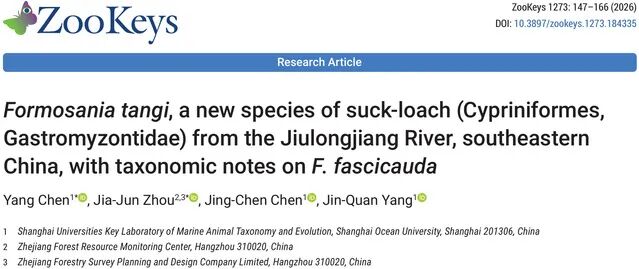 一段跨越百年的分类学悬案,近日终于尘埃落定。上海海洋大学与浙江省森林资源监测中心等单位近日联合在国际学术期刊《ZooKeys》上发表研究成果,正式将福建省九龙江流域发现的腹吸鳅科鱼类确立为新物种——文乔缨口鳅。其命名旨在致敬上海海洋大学唐文乔教授在鱼类学领域的贡献。