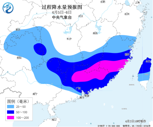 江南南部和华南等地有强降雨和强对流天气过程。预计5日至6日,江南南部、华南、贵州东部等地有大到暴雨,江西南部、福建南部、广东北部等地部分地区有大暴雨。