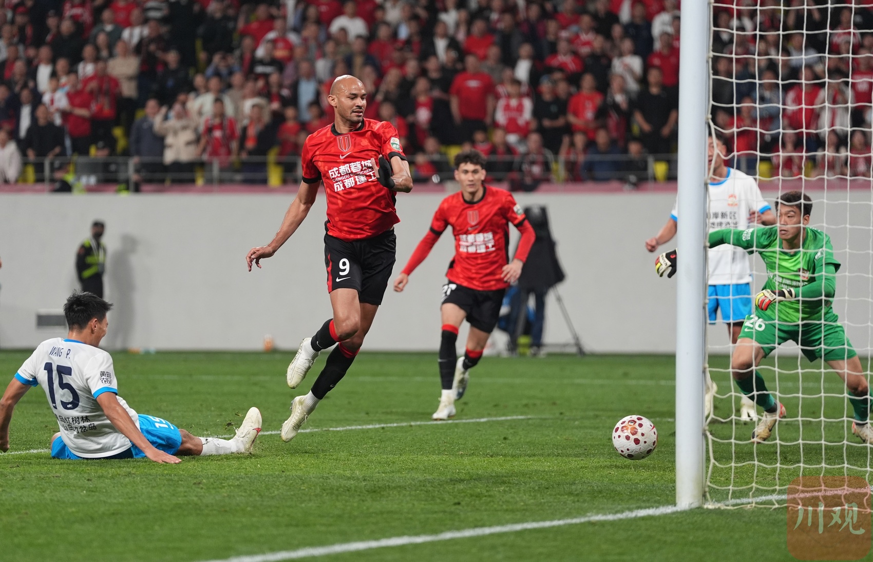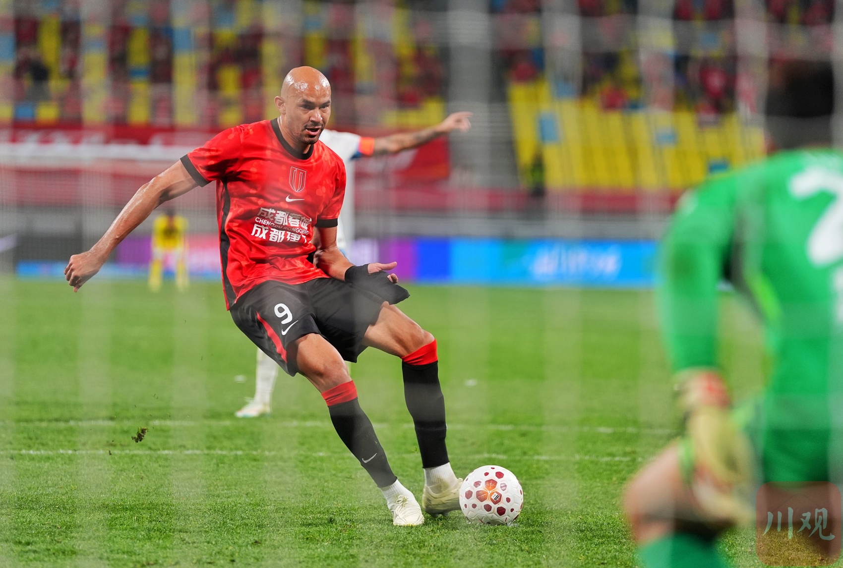 成都蓉城队员费利佩主罚点球破门瞬间。