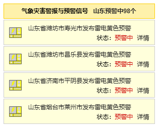 目前,山东多地已发布雷电、大风等预警,截至4日17时,生效中的预警达98个。