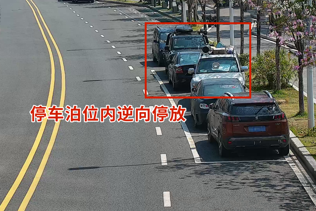 在停车泊位内逆向停放的。