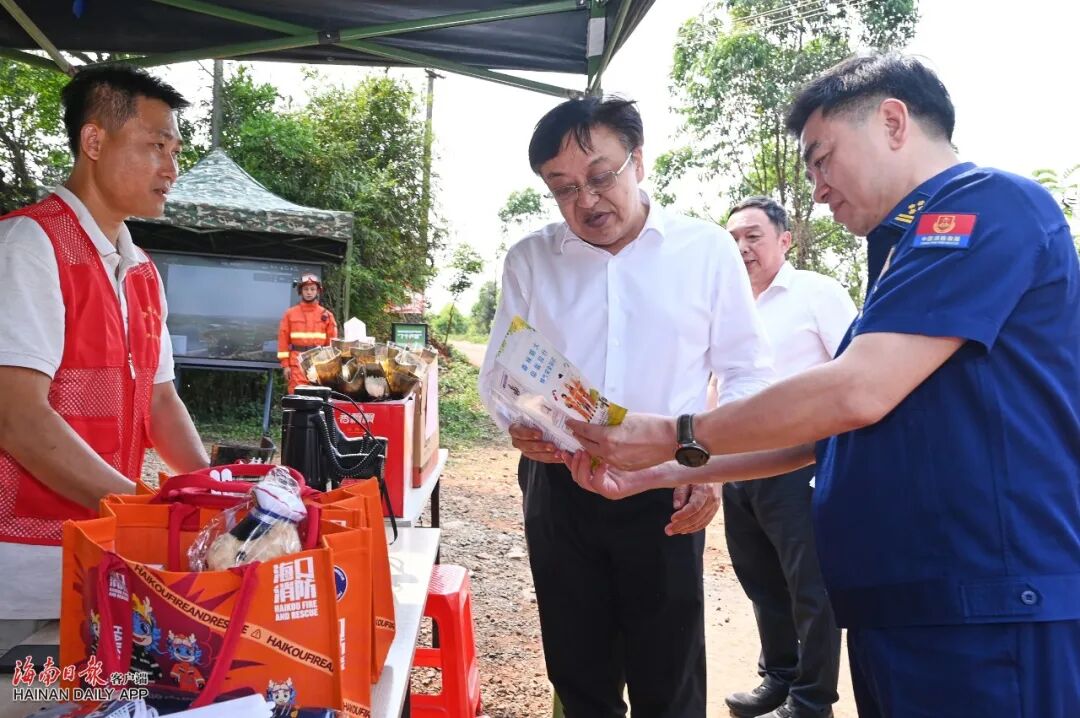 4月3日,省委书记冯飞在海口调研检查清明节祭扫安全及森林防灭火工作,看望慰问值班值守的消防救援人员和基层干部。