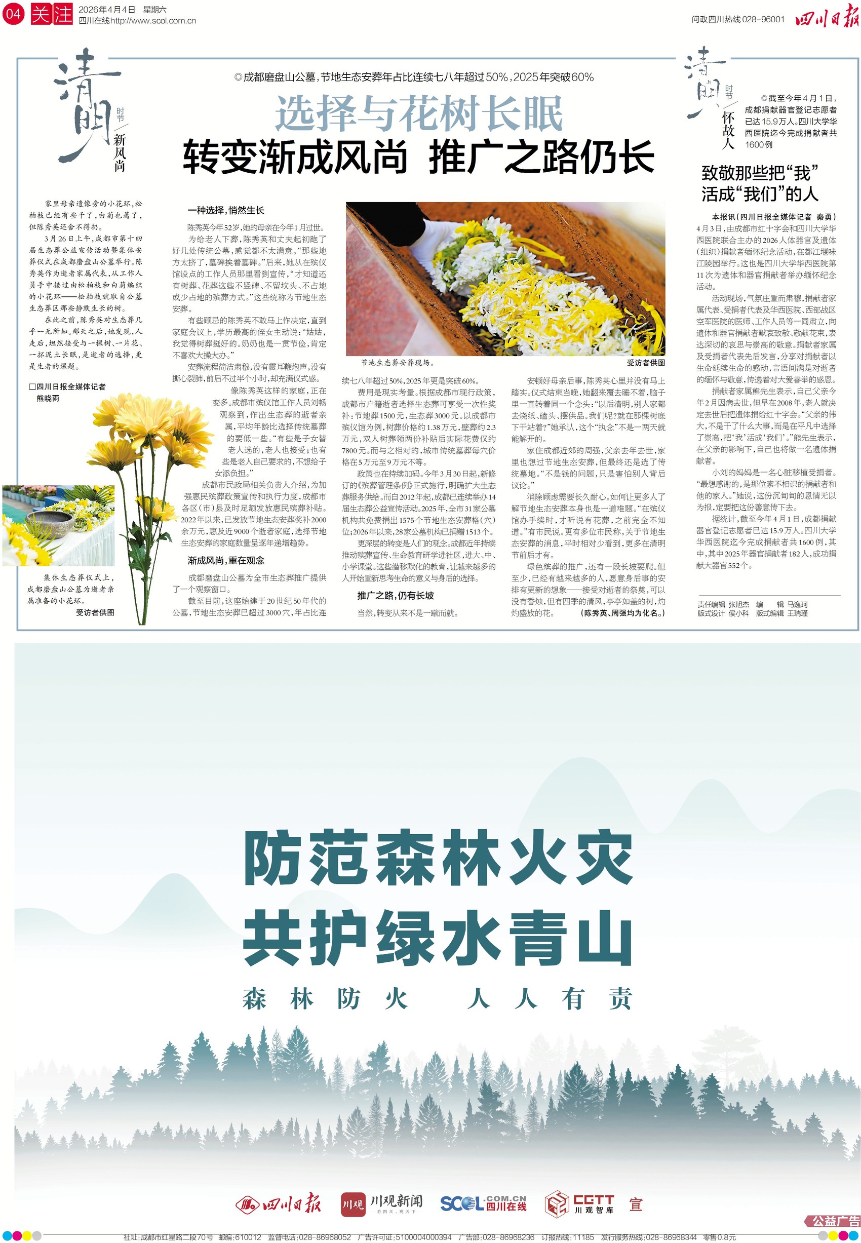 近年来,在节地生态安葬的政策支持与观念引导下,成都选择生态葬的家庭逐年增多,绿色殡葬正渐成风尚。尽管受传统观念等影响,生态葬推广仍面临阻力,但越来越多的人开始接受这种让生命回归自然、以清风繁花寄托思念的殡葬方式。今日四版,关注这一新风尚。