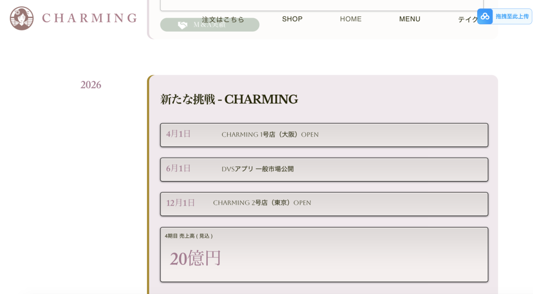 红星新闻记者在其官网中看到,该奶茶品牌所属的阳阳转运株式会社(翻译名)成立于2022年10月3日,2023年首期销售额达2亿元。2026年4月1日,Charming1号店在大阪开业,并计划于12月1日在东京开设Charming2号店。