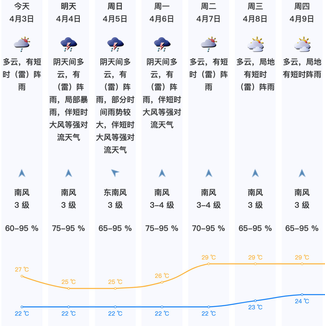 这个清明假期,无论是祭祖扫墓,还是赏花出游,都建议小伙伴们关注天气预报,合理规划行程,祝大家度过一个安乐祥和的假期。