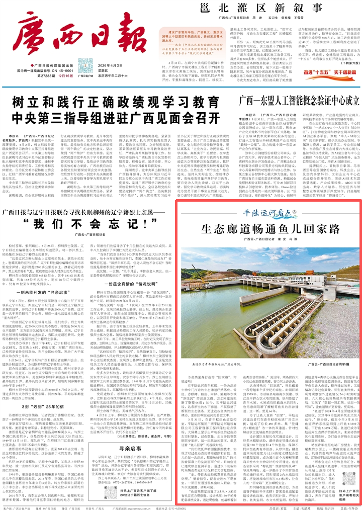 3月31日,在青年枢纽鱼道监控室,平陆运河集团广西平陆运河建设有限公司工程管理部工程师陈柱轻点鼠标,大屏幕上显示出声呐系统的过鱼动态实时景象,过鱼数量、水文参数等数据同步刷新。每一组跳动的数字,都见证着“鱼儿回家”的温暖时刻。
