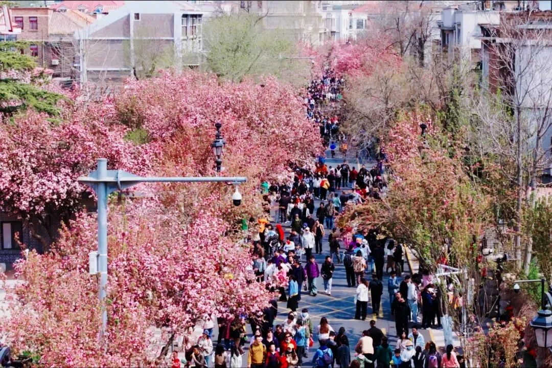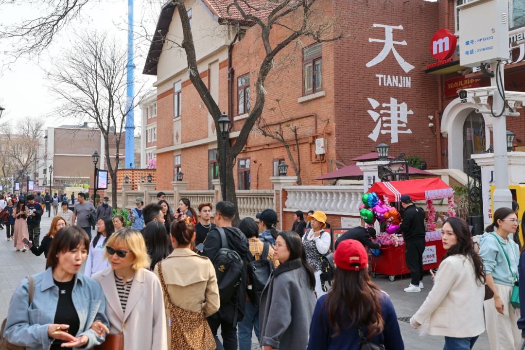 这不只是把游客引入海棠花海的路,也是文创、餐饮等商业业态的更新之路。KLAP KLUB文创店店长马莹莹,一位干练的天津“95后”姑娘,她坦言,步行街的改造让店面重获新生,海棠花季即将到来,店里客流量和流水比平时翻了一倍。店铺和150位原创设计师合作,推出冰箱贴、玩偶、明信片等各类伴手礼,天津和海棠花元素的文创产品,正摆在了店里的C位。