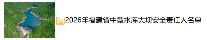 按照《水库大坝安全管理条例》《福建省水利工程管理条例》以及水利部有关文件要求,现公布2026年度我省中型水库大坝安全管理责任人名单,接受社会监督。