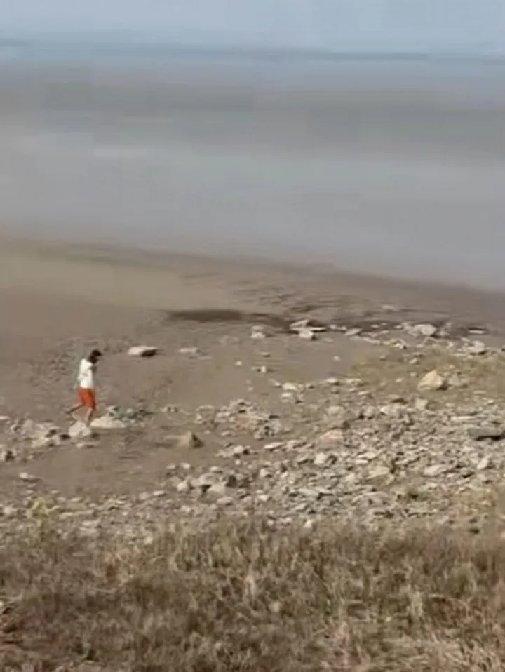一名博主现场拍到了“钱塘江道长”最后的身影:他只身一人行走在滩涂上,朝着远处的水面行动……