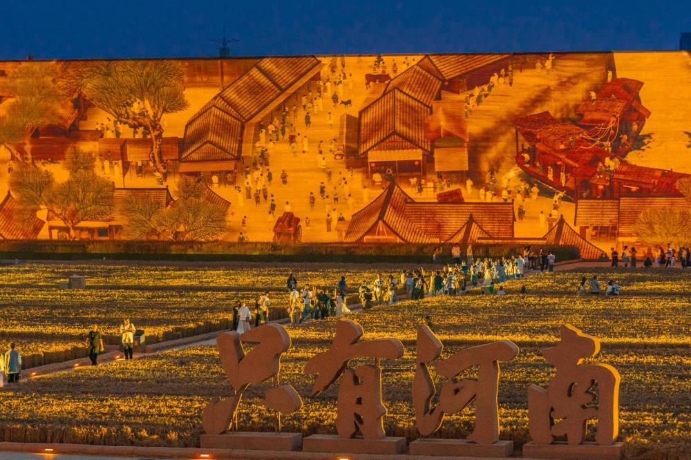 白天,这面夯土墙是可触摸的黄河文明地标;入夜,它便化作巨幅画卷,一幅《清明上河图》在激光投影中徐徐展开。