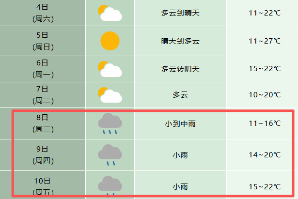受冷空气影响,7-8日我省最高气温普遍在20℃以下。其余时段大部分地区最高气温在20℃以上。