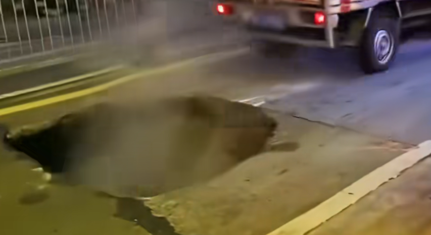 4月2日,视频拍下广东中山古镇一车辆刚经过,道路就塌陷出现坑洞。