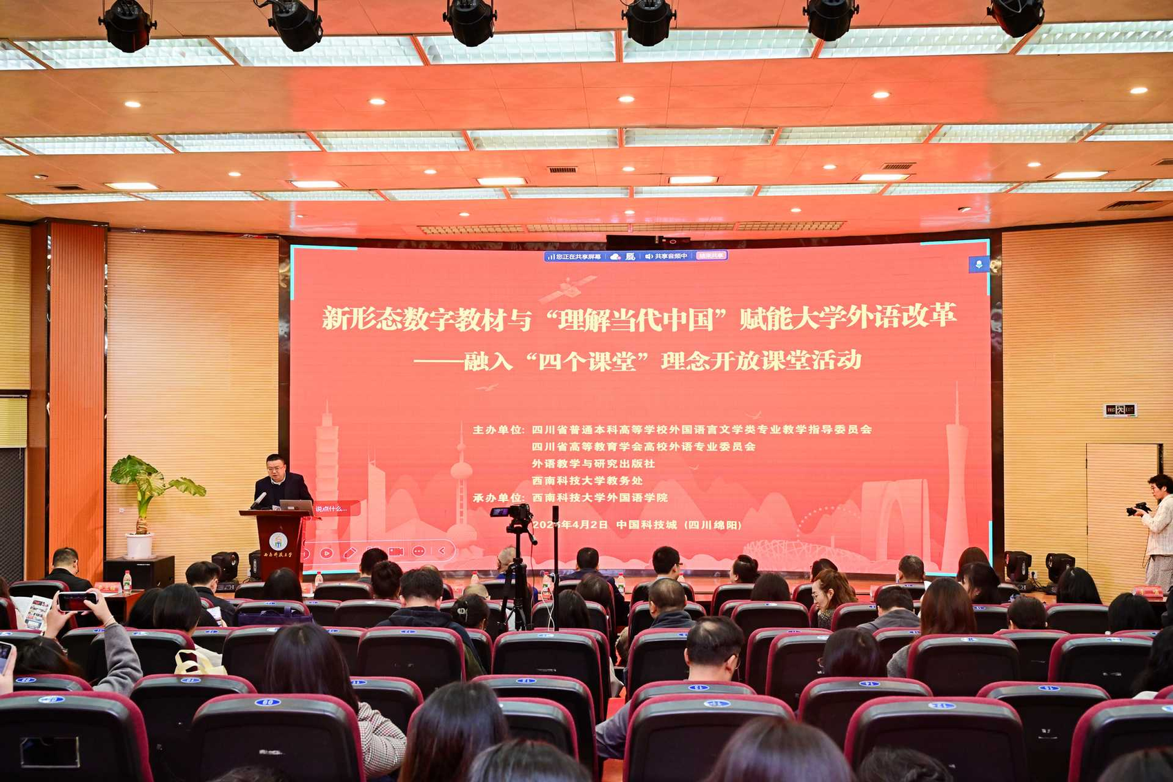 4月2日,由四川省普通本科高等学校外国语言文学类专业教学指导委员会、四川省高等教育学会高校外语专业委员会、外语教学与研究出版社、西南科技大学教务处联合主办,西南科技大学外国语学院承办的“新形态数字教材与‘理解当代中国’赋能大学外语改革——融入‘四个课堂’理念开放课堂活动”在绵阳举行。全国9个省市42所高校近200名外语专业负责人和骨干教师齐聚西南科技大学,共探“四个课堂”理念下的外语课程改革与教学创新。