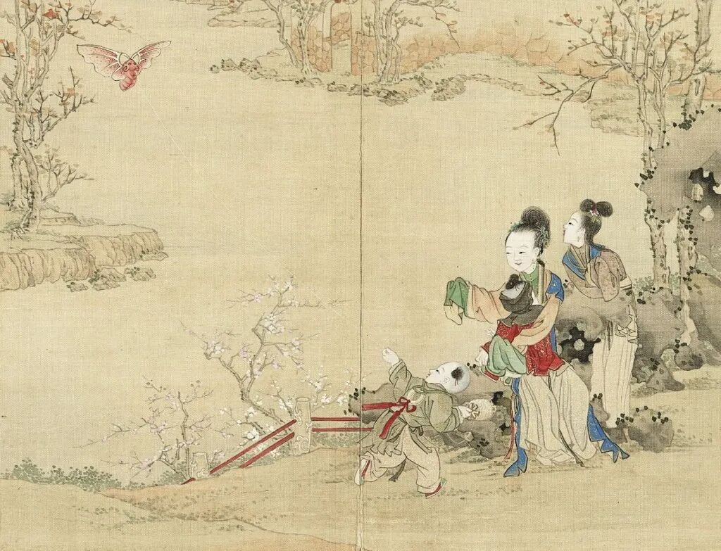 升平乐事图册之放风筝,清人绘,台北故宫博物院藏