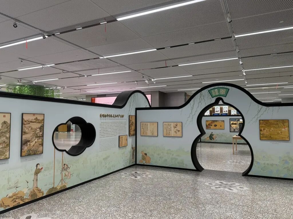 展览选择了明代著名画家仇英的《清明上河图》高清图铺满墙面。这幅图以明代苏州城为原型,色彩明快、场景鲜活,成为展览的核心亮点,生动还原了古代清明的欢乐图景。