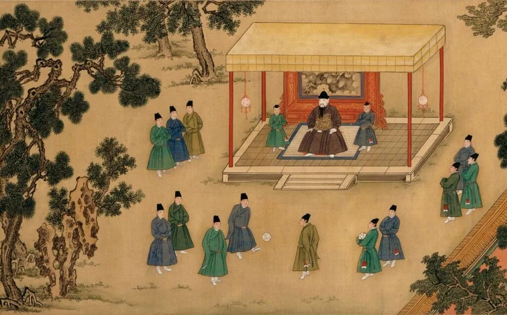 明宣宗行乐图卷之蹴鞠,明人绘,北京故宫博物院藏