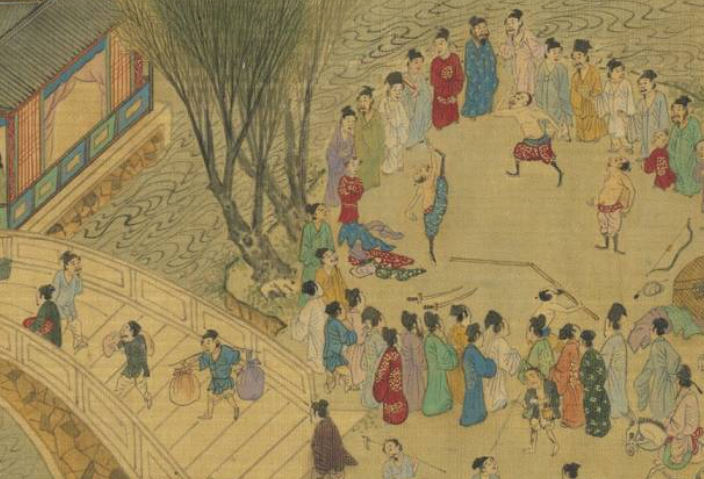 蹴鞠和秋千被认为是两种比较高雅的清明活动,蹴鞠就是踢球,在先秦时期已经是民众喜爱的体育运动,在唐宋达到鼎盛。秋千起源于春秋时期的北方地区,也称“千秋”,有祈祷千秋之寿的含义,在唐宋时期成为广受欢迎的寒食、清明节俗活动。