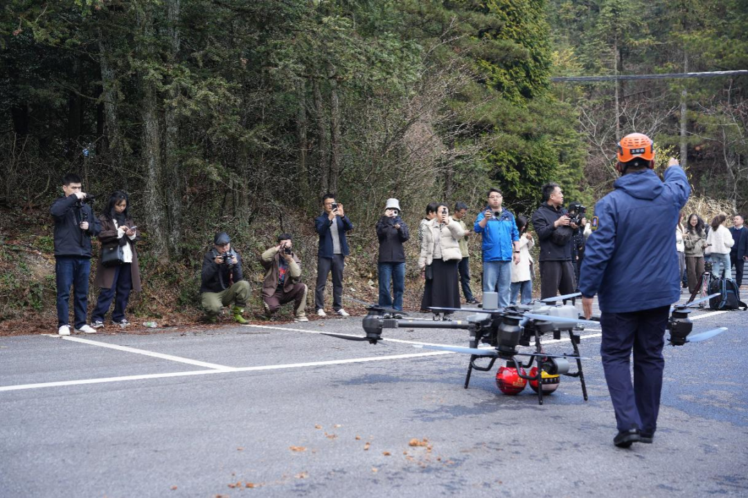 采访金华市婺城区无人机救援大队,观摩无人机灭火演练。