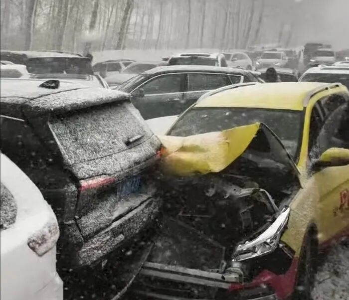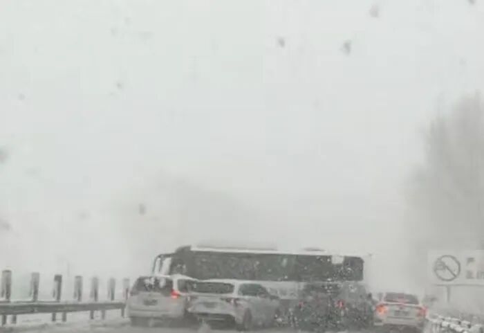 网传视频显示,现场大雪纷飞、风雪弥漫,能见度极低,路面被积雪覆盖、湿滑结冰,数十辆轿车、SUV与客运大巴首尾相撞、挤压变形,部分车辆损毁严重。不少车主下车查看情况,整条高速陷入严重拥堵,现场一片狼藉。