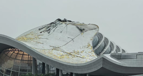 3月30日,广东科学中心发布消息:受强对流大风暴雨天气影响,广东科学中心主馆屋顶外层铝板局部受损,需临时闭馆一周。