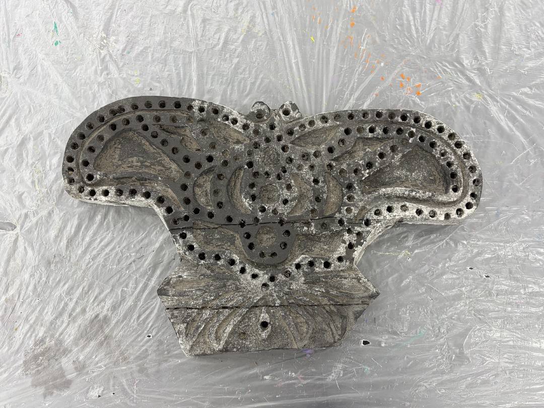 传统的金鸡风筝主要有“划篾条、绑篾条、糊纸、穿线”等步骤。但与手绘风筝不同的是,金鸡风筝还有一个模板:在模板上涂上颜料,印在已经塑形好的风筝上,这算是制作完成了。