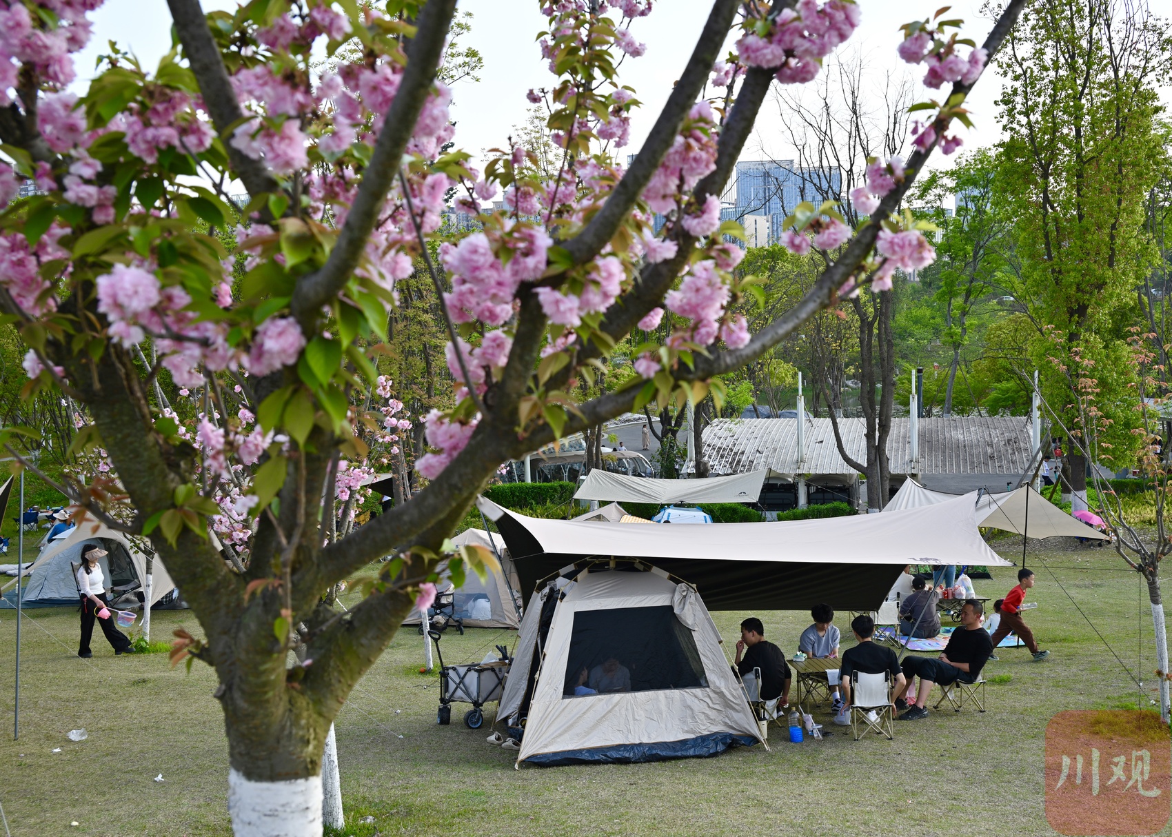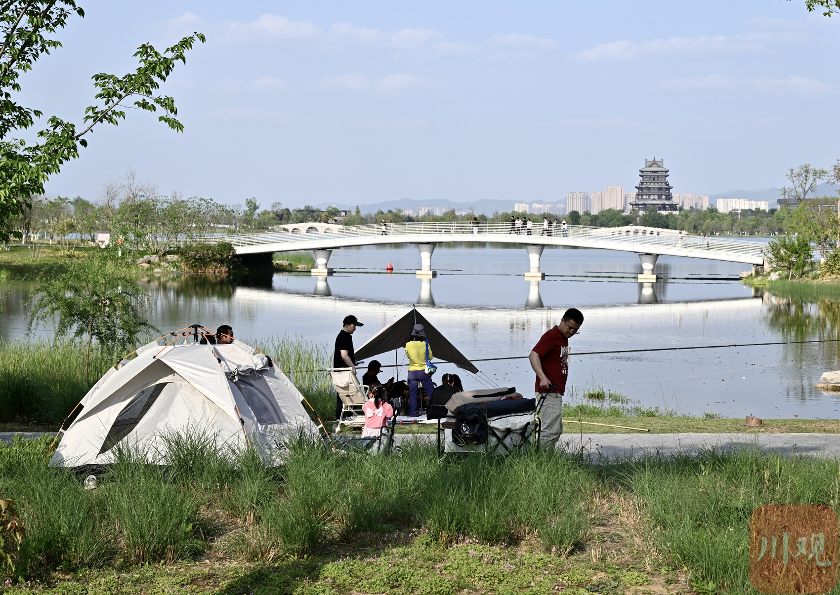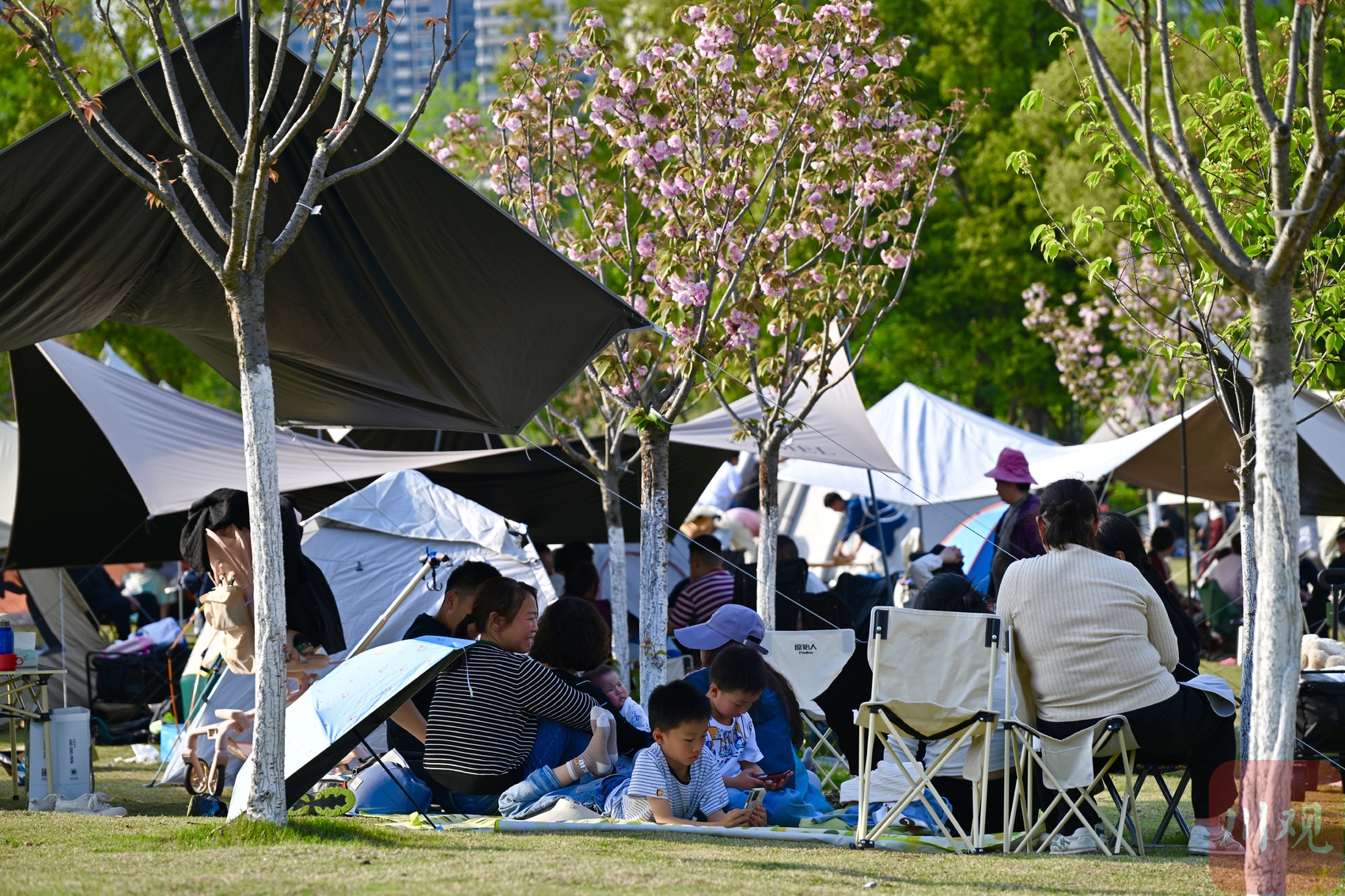 4月4日,清明节假期首日,成都市区天朗气清、春光正好。东安湖公园书香岛露营地人气旺盛,不少市民游客携家人前来露营踏青,尽享春日美好。