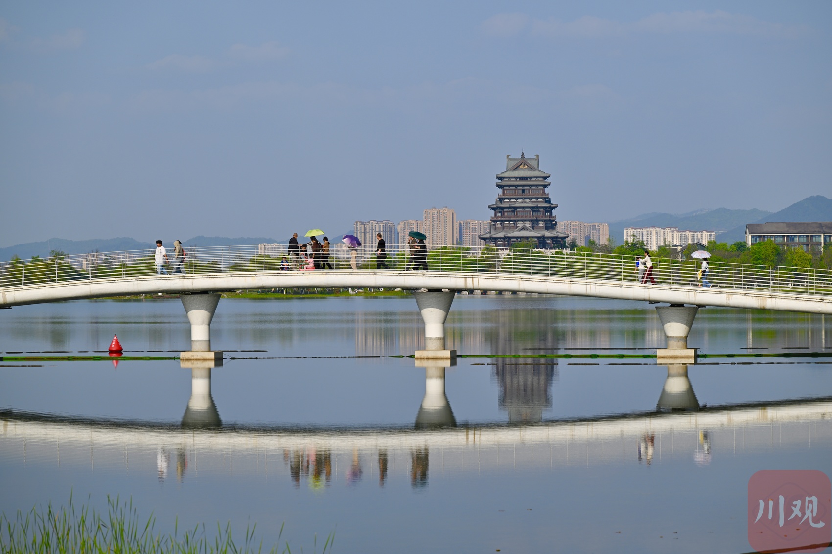 市民游客在成都东安湖公园游玩。