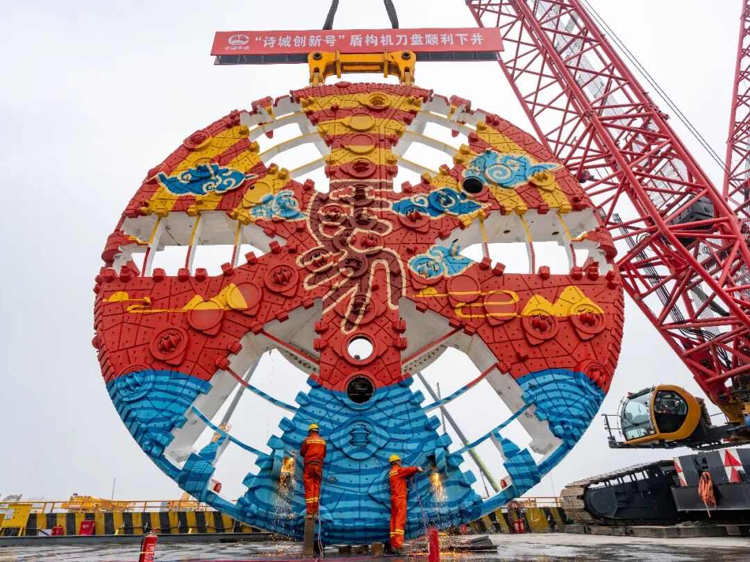 “诗城创新号”盾构刀盘开挖直径15.07米,此次下井的刀盘系盾构最大单体部件,采用针对性设计,可有效应对长江高水压、软硬不均的复杂地质环境,确保掘进过程平稳高效,为长距离穿江施工提供坚实保障。