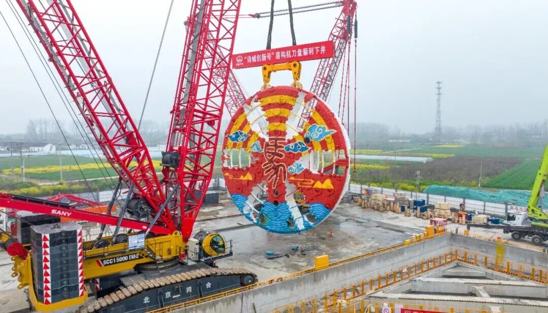 3月31日,马鞍山市湖北路过江通道项目取得新进展,由中铁隧道局联合中铁装备研制的超大直径泥水平衡盾构“诗城创新号”刀盘顺利吊装下井,标志着盾构组装关键节点取得重大突破。