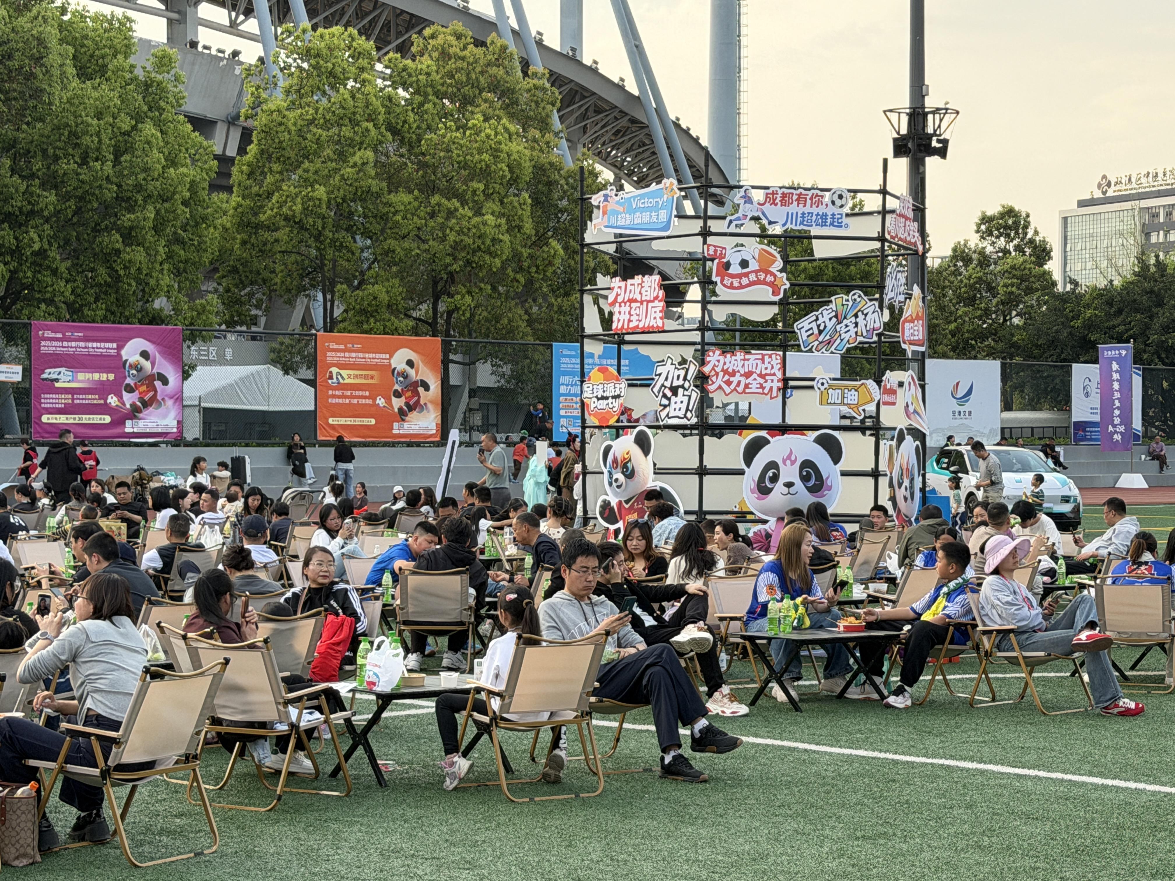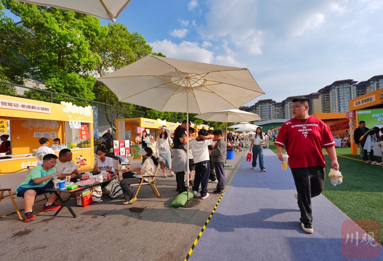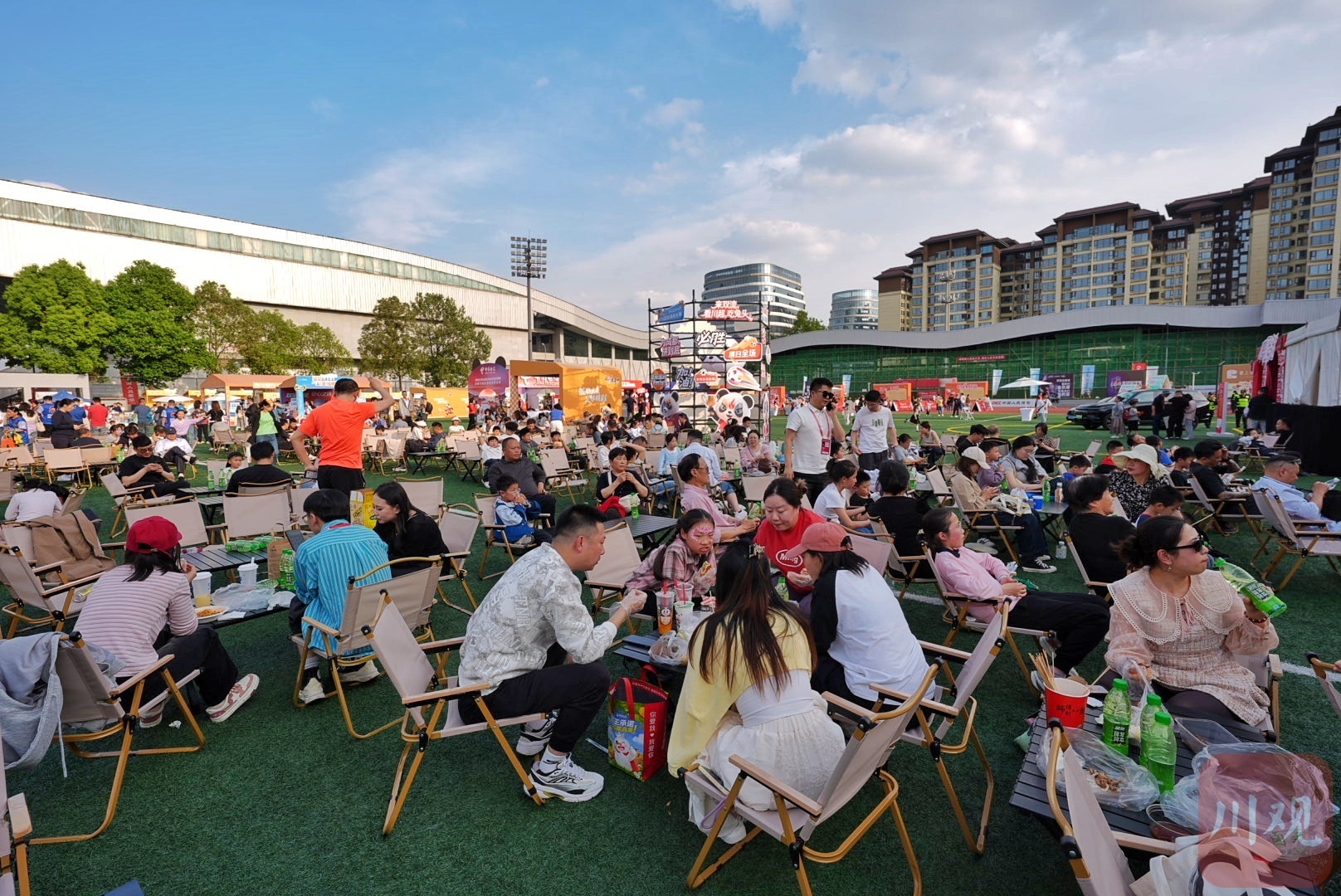 赛场外的“川超嘉年华”同样人声鼎沸,热闹非凡。锅盔、凉粉、钵钵鸡等各色川味美食香气四溢,吸引众多球迷驻足品尝。不少提前到场的球迷早已在大屏观赛区占好位置,坐上舒适的沙滩椅,一边享受美食,一边静候绿茵场上的巅峰对决。这场融合了竞技激情与烟火气息的足球盛宴,让每一位参与者都沉浸其中。