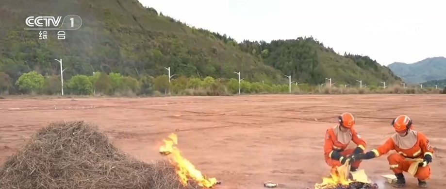 在试验中,消防员使用风力测试仪、风机等,模拟瞬时五级风力的条件下点火烧纸。可以看到,在风力作用下,枯叶堆很快就燃起明火。