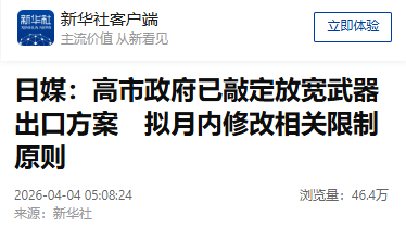 据新华社消息,据日本共同社3日晚报道,高市早苗政府正在酝酿出台的放宽日本武器出口规则方案,其整体内容已经明确。高市政府计划本月内修改“防卫装备转移三原则”及其运用指南。
