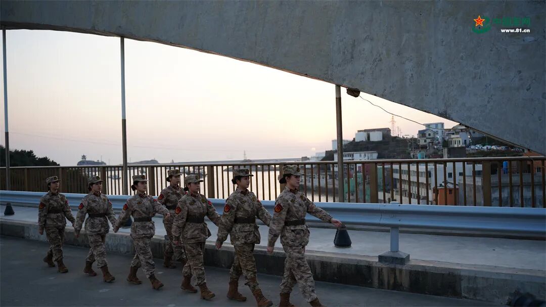 哨所静静矗立于山顶,俯瞰东海。日落时分,海面泛起橙红的波浪,归港的渔船在渐深的暮色中悄然泊锚,这是姑娘们初到哨所时看到的风景。彼时,她们心中满是对戎装的向往,想象着自己穿上军装,扛着钢枪,英姿飒爽的模样。但现实与理想的强烈反差,给了她们不小的打击:采买生活物资,往返一趟动辄近一小时;巡逻路上常要穿过一人多高的草地,踩过湿滑的礁石;还有日复一日执勤、训练、汇报,哨所的生活也不乏“意外惊喜”——营区窜出的蛇、钻出的老鼠、床头爬出的虫子……初来时的新鲜感,渐渐被这些具体而琐碎的日常取代。