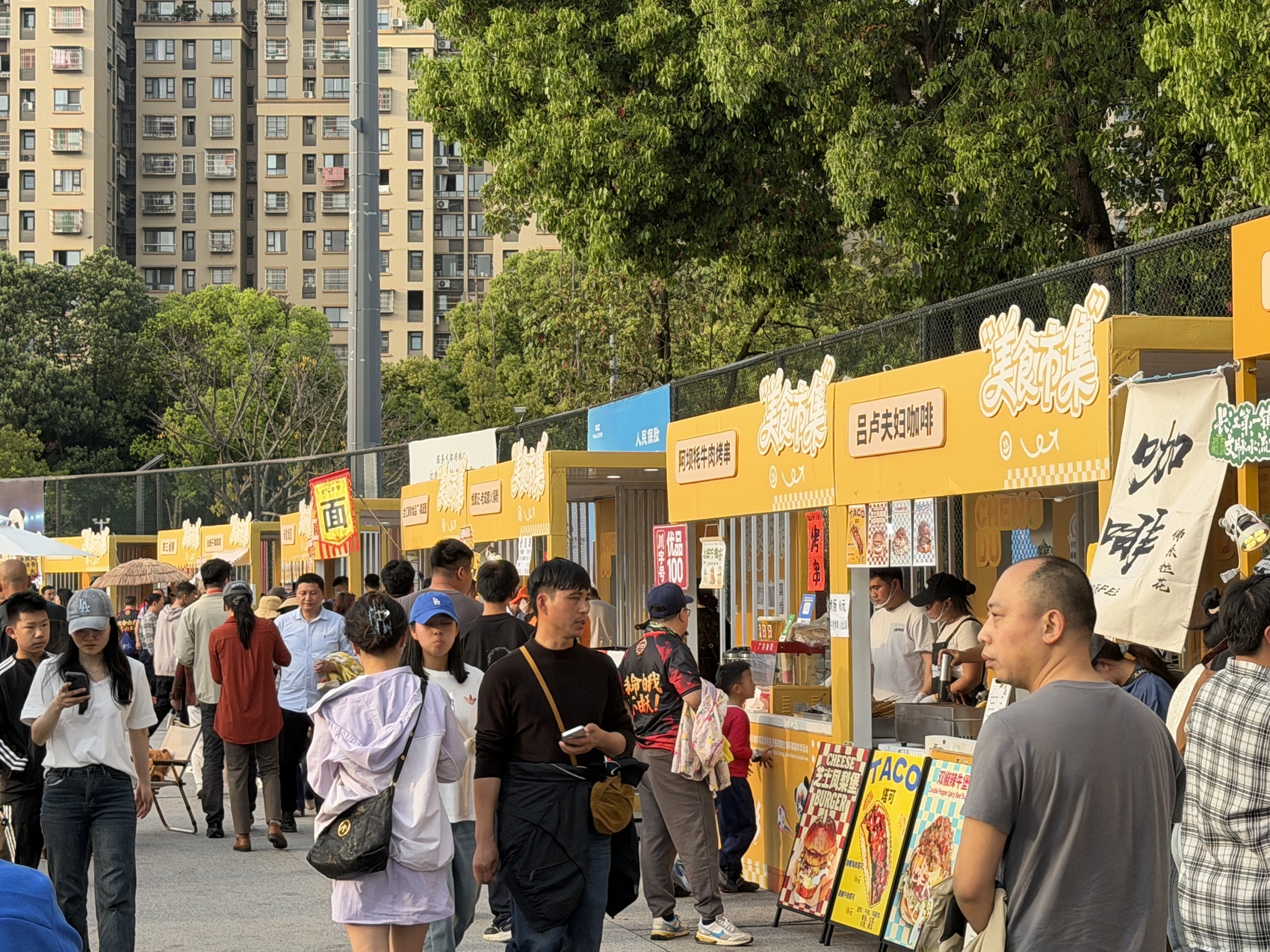 将目光投向嘉年华现场,烟火气扑面而来。据双流区商务局消费场景营造科相关负责人严港介绍,本次嘉年华依旧组织50余家商家摆展,其中40余个餐饮展位既有双流本地美食,也有宜宾燃面、冷吃兔、凉糕等7家宜宾特色商家,坝坝茶区域还特意引入宜宾高县扁茶,让球迷在家门口尝到“客场味道”。体育馆东门还提供免费商务车接驳往返看车,推动赛事客流与汽车消费联动。