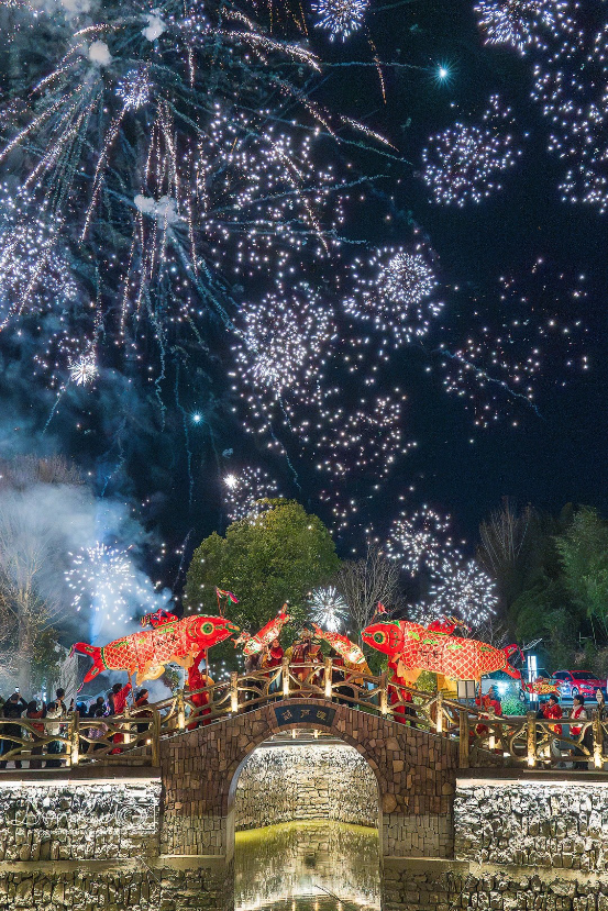下午转场千年古村仁里——这里曾是徽杭古道上的漕运重镇,青石板路、老祠堂、古巷弄,时光在这里慢了下来。夜晚,看一场烟火游龙,听一场古道星空音乐会,民谣、徽州小调在古村夜空下响起……