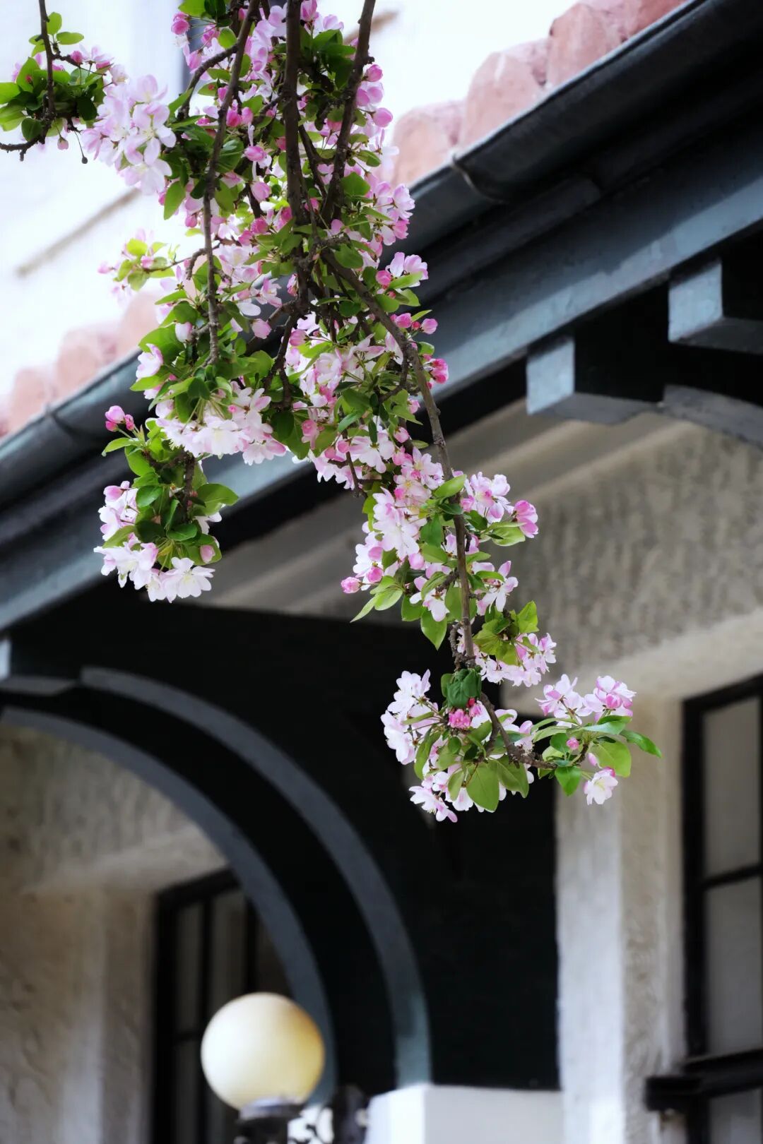 院里摆着几张藤编的桌椅,都坐满了人。桌上摆着精致的茶点。我这才注意到,樘院并不是个景点——它的一侧是间茶室,另一侧是家文创小店,旁边还有西餐。原来,消费在这里不再是简单的买卖,而是一种慢下来的姿态,一种被花香浸透、被琴声包裹的雅致。