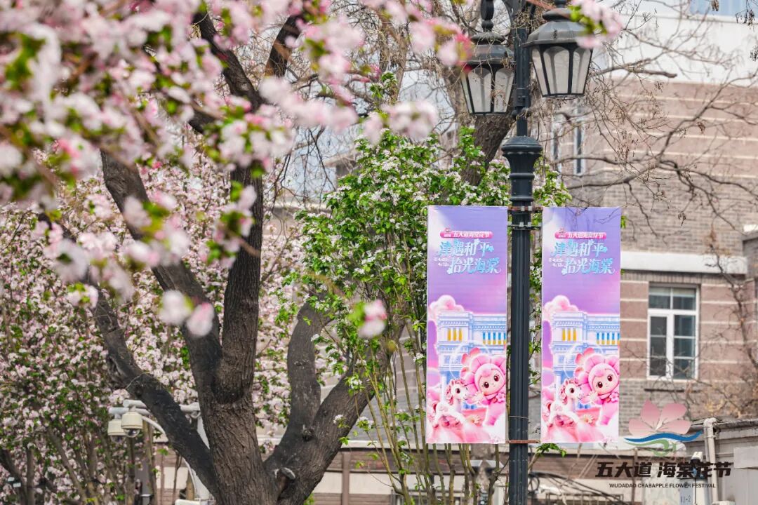 中午的阳光暖融融的,我在路边找了家小店坐下。店面不大,门头是海棠树的造景,和街上的花应和着。这是160多家“海棠小店”的其中一个,它们或是有海棠装饰,或是有海棠主题产品。这些小店星星点点地散落在各处,让和平区处处都染上了海棠的清香。