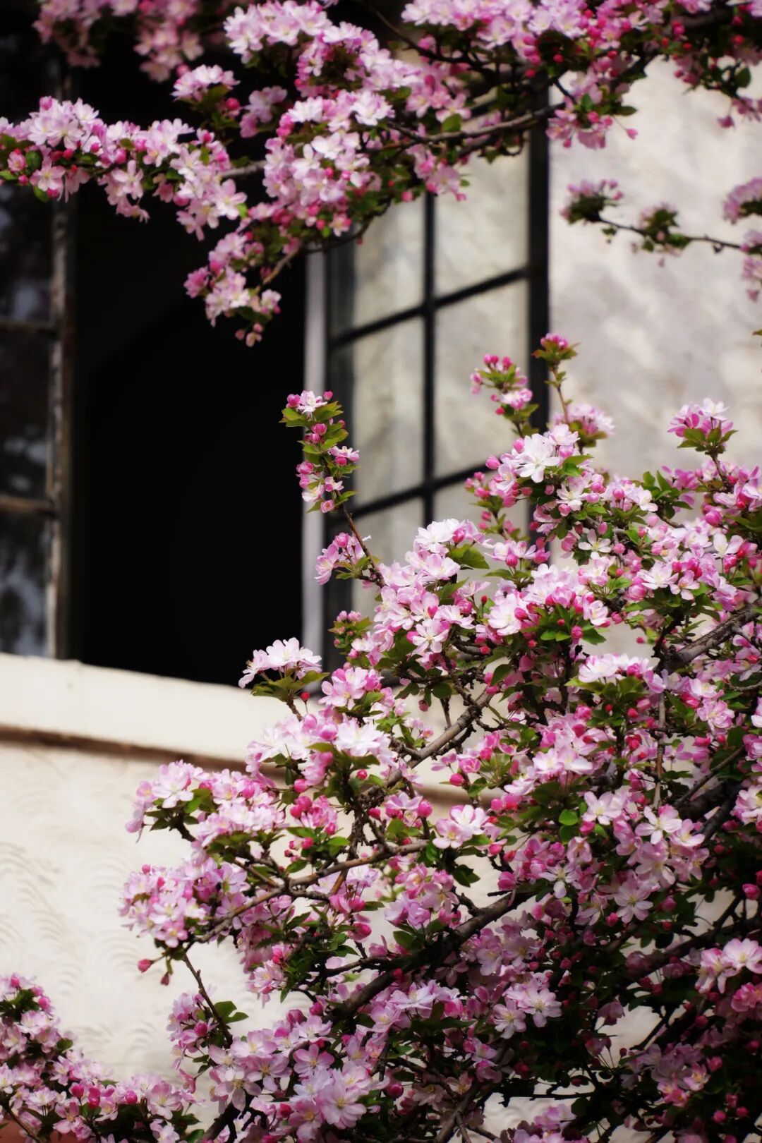 路边的围墙上,尽是关于海棠的诗,字迹清秀,躲在花影里,若是走得快了,一准会错过这些“小惊喜”。