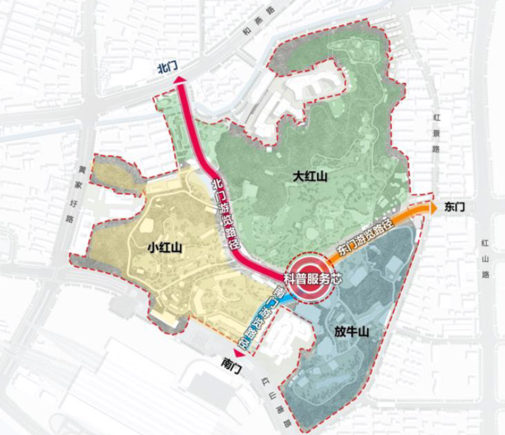 据了解,为实现红山山体自然资源的整体性保护与统筹利用,本次规划将原先割裂的山体生态斑块纳入统一管理范围。面积由现状管理范围的55.9公顷扩大到规划的69.3公顷。通过边界整合,强化动植物栖息地的整体性与连通性,提升山体景观的整体展示效果,并为未来生态保育、科普教育及山地型展区建设提供系统化的空间保障。