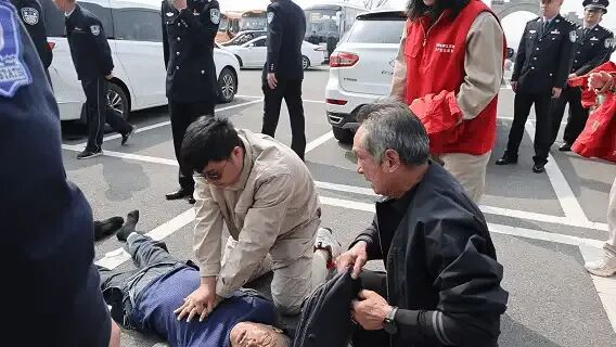 与此同时,一场自发的生命守护联盟在现场形成。有人急奔取来车载急救箱,找出速效救心丸小心放入老人口中;众人默契地散开围圈,既留出救援空间,也保障空气流通;更多关切的目光,汇聚成无形的支撑力量……