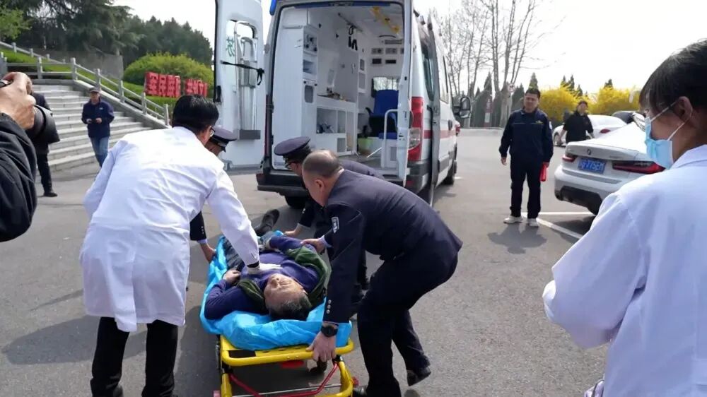 从老人倒地到被抬上救护车,这场紧张的救援持续了约15分钟。因现场初步抢救及时、处置得当,为后续治疗赢得了宝贵的“黄金时间”。据悉,老人被紧急送往赣榆区人民医院后,经救治已暂时脱离生命危险。