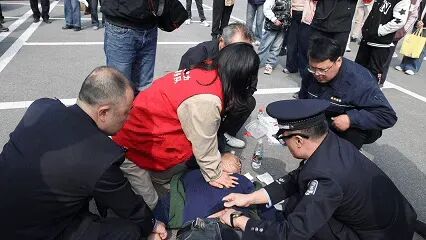 她没有丝毫犹豫,跪倒在坚硬的水泥地上,快速检查:意识丧失、呼吸停止。一下、两下、三下……标准而有力的胸外按压迅速展开。