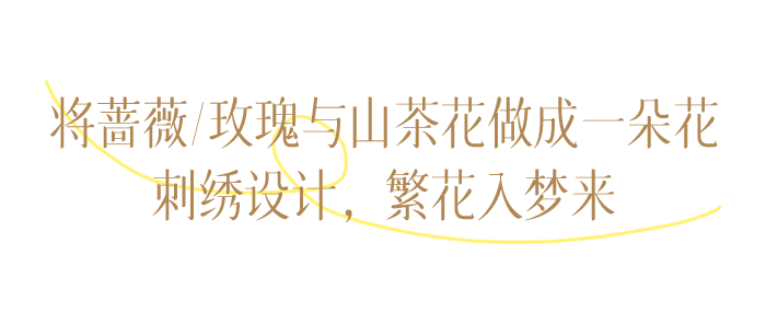 刺绣花卉是风格化的复古花卉,融合了蔷薇/玫瑰与山茶花特征的装饰性花型,花瓣呈层叠饱满的形态,带有卷曲的藤蔓和叶片,典法式/洛可可风格装饰花卉。