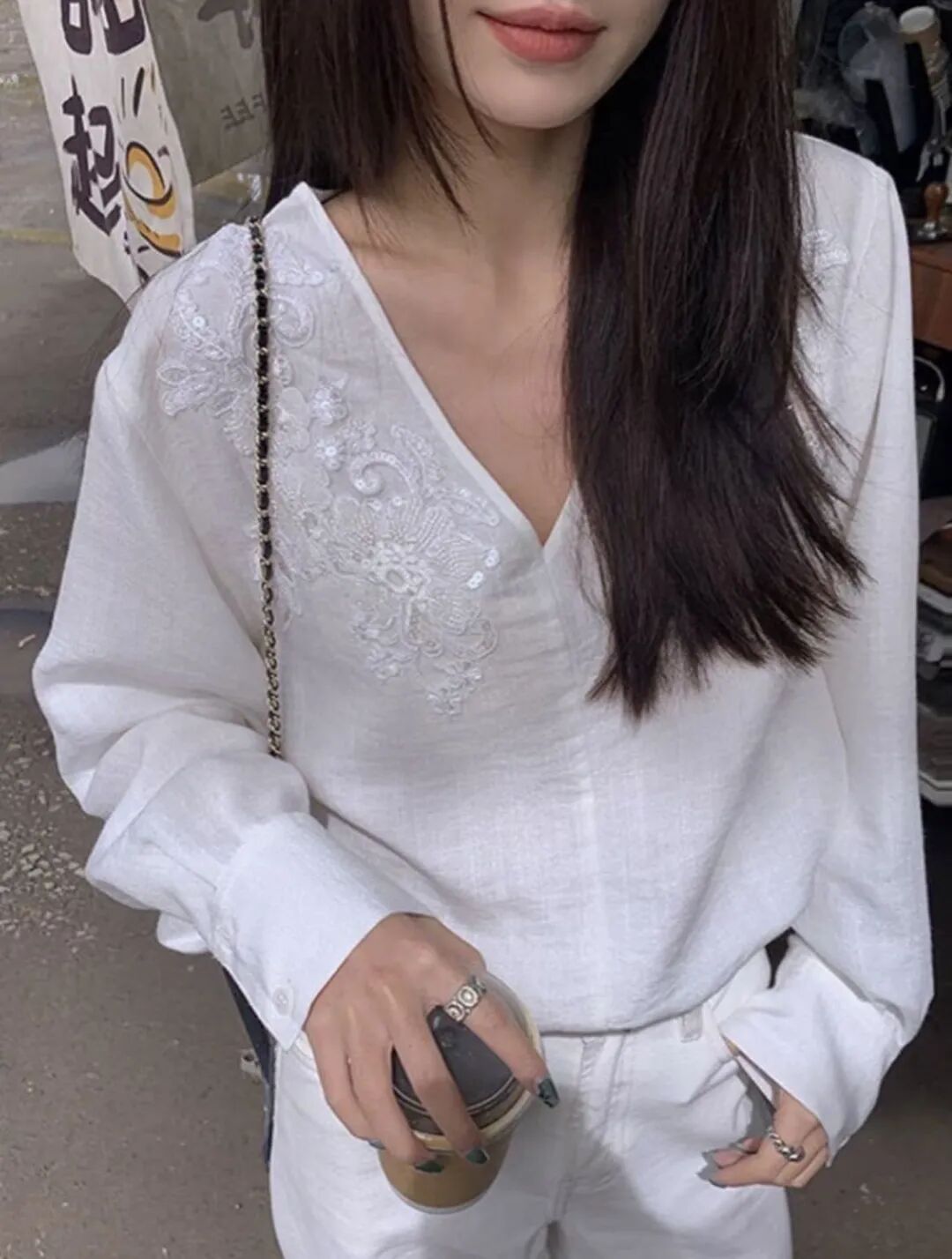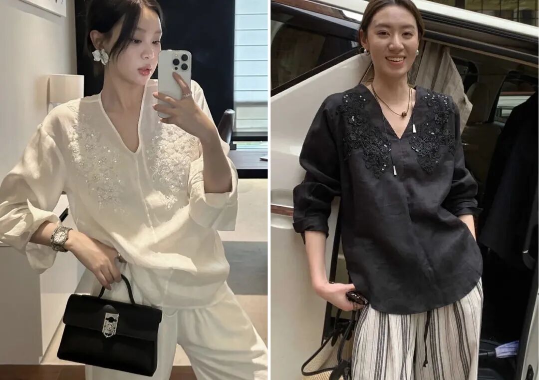 今年春天,时尚穿搭圈火了一件衣服:法式刺绣V领上衣。